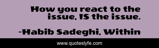 This page presents the quote "How you react to the issue, IS the issue.". Author of this quote is Habib Sadeghi, Within. This quote is about emotional, reaction, healing, inspirational, enthusiasm,.