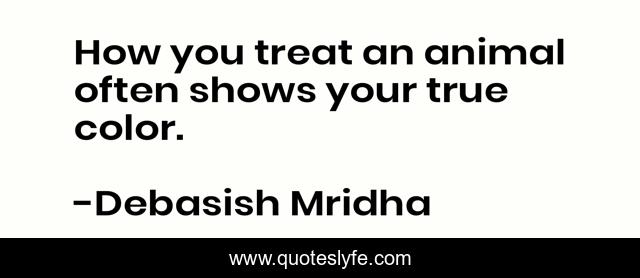 This page presents the quote "How you treat an animal often shows your true color.". Author of this quote is Debasish Mridha. This quote is about show-your-true-color, life-wisdom, philosophy, debasish-mridha, quotes, how-you-treat-animals, inspirational, enthusiasm, debasish-mridha-m-d,.