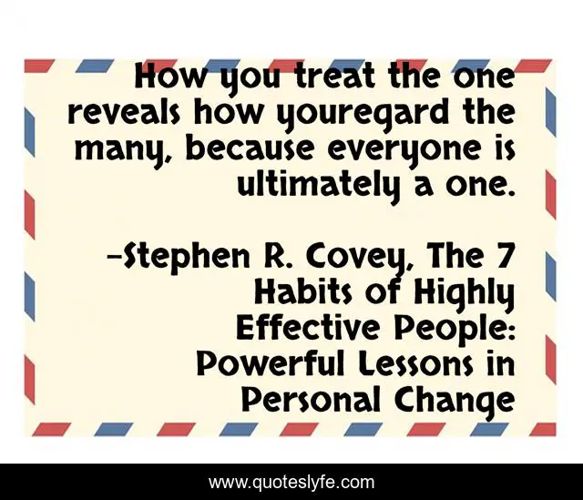 "Stephen R. Covey, The 7 Habits of Highly Effective People: Powerful Lessons in Personal Change Quotes." Quoteslyfe.com, 2025. Mon. 08 Dec. 2025. <https://www.quoteslyfe.com/quote/How-you-treat-the-one-reveals-how-179672>.