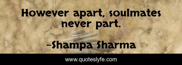 "Shampa Sharma Quotes." Quoteslyfe.com, 2026. Mon. 12 Jan. 2026. <https://www.quoteslyfe.com/quote/However-apart-soulmates-never-part-175621>.