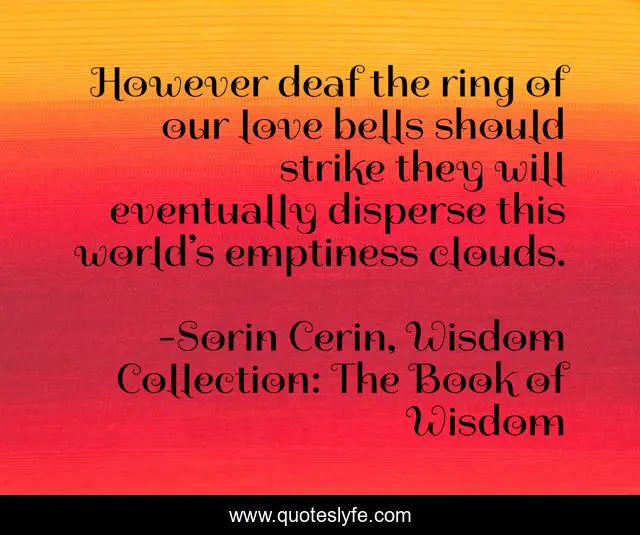 This page presents the quote "However deaf the ring of our love bells should strike they will eventually disperse this world’s emptiness clouds.". Author of this quote is Sorin Cerin, Wisdom Collection: The Book of Wisdom. .