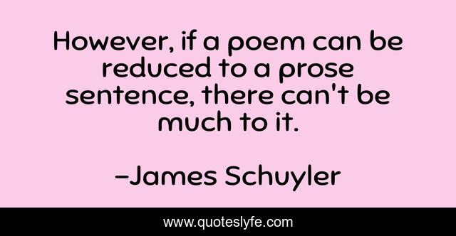 This page presents the quote "However, if a poem can be reduced to a prose sentence, there can't be much to it.". Author of this quote is James Schuyler. This quote is about prose, poem, sentence,.