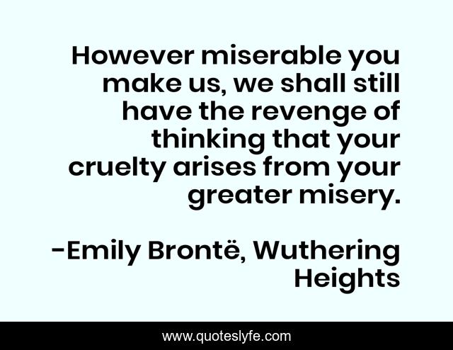 "Emily Brontë, Wuthering Heights Quotes." Quoteslyfe.com, 2025. Mon. 08 Dec. 2025. <https://www.quoteslyfe.com/quote/However-miserable-you-make-us-we-shall-217691>.
