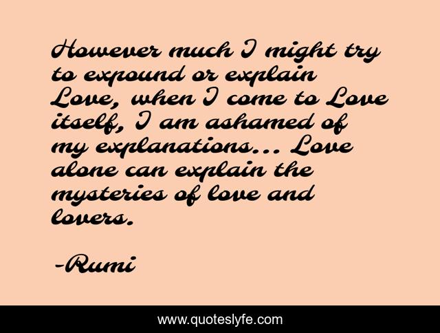 This page presents the quote "However much I might try to expound or explain Love, when I come to Love itself, I am ashamed of my explanations... Love alone can explain the mysteries of love and lovers.". Author of this quote is Rumi. This quote is about try, love, affection,.