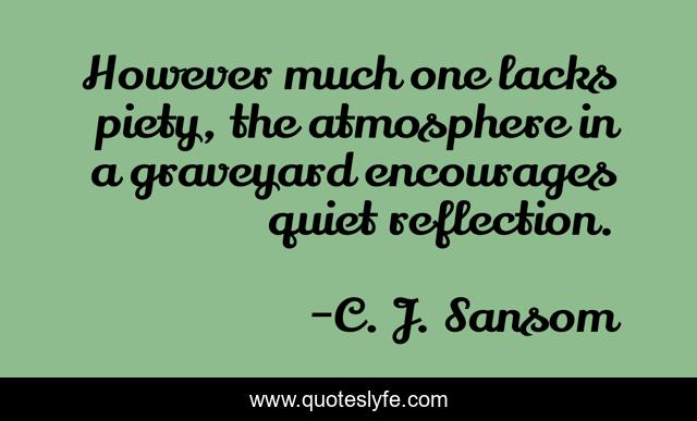 This page presents the quote "However much one lacks piety, the atmosphere in a graveyard encourages quiet reflection.". Author of this quote is C. J. Sansom. This quote is about death, reflection, piety, history,.