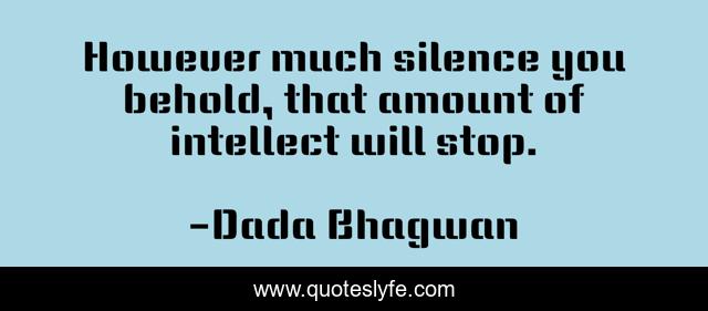 This page presents the quote "However much silence you behold, that amount of intellect will stop.". Author of this quote is Dada Bhagwan. This quote is about spiritual, stop, amount, silence, intellect,.