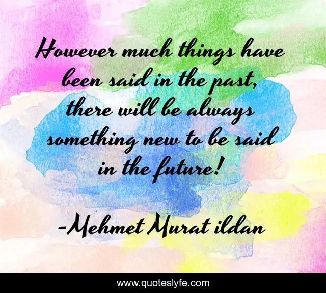 This page presents the quote "However much things have been said in the past, there will be always something new to be said in the future!". Author of this quote is Mehmet Murat ildan. This quote is about past, said, something-new, mehmet-murat-ildan, ildan-wise-sayings, turkish, ildan-wisdom, new-things, turkish-playwrights,.