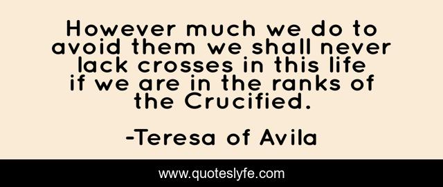 This page presents the quote "However much we do to avoid them we shall never lack crosses in this life if we are in the ranks of the Crucified.". Author of this quote is Teresa of Avila. This quote is about faith, unity,.