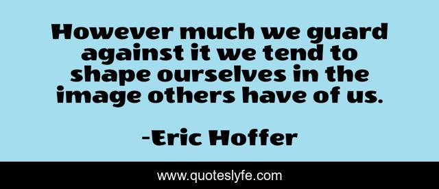 This page presents the quote "However much we guard against it we tend to shape ourselves in the image others have of us.". Author of this quote is Eric Hoffer. This quote is about positive, confidence,.