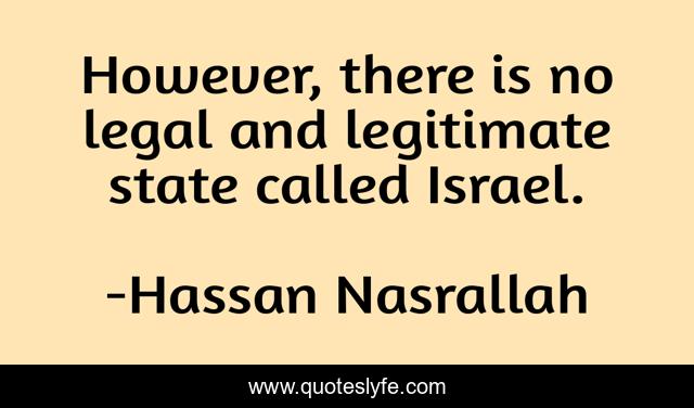 This page presents the quote "However, there is no legal and legitimate state called Israel.". Author of this quote is Hassan Nasrallah. This quote is about israel, state, however,.