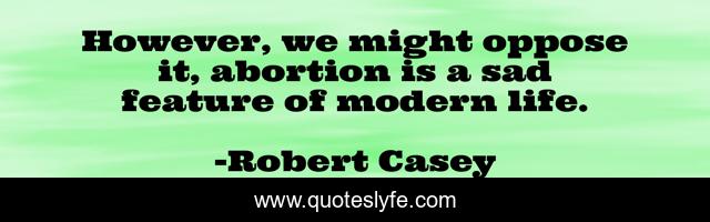 This page presents the quote "However, we might oppose it, abortion is a sad feature of modern life.". Author of this quote is Robert Casey. This quote is about life, modern, abortion,.