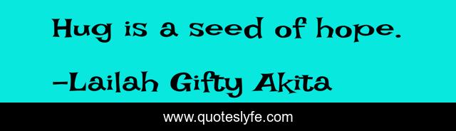 "Lailah Gifty Akita Quotes." Quoteslyfe.com, 2025. Sat. 06 Dec. 2025. <https://www.quoteslyfe.com/quote/Hug-is-a-seed-of-hope-125127>.