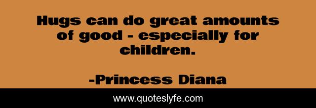 This page presents the quote "Hugs can do great amounts of good - especially for children.". Author of this quote is Princess Diana. This quote is about great, good, children,.
