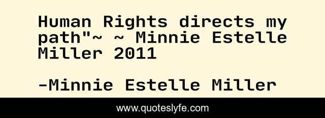 This page presents the quote "Human Rights directs my path"~ ~ Minnie Estelle Miller 2011". Author of this quote is Minnie Estelle Miller. .