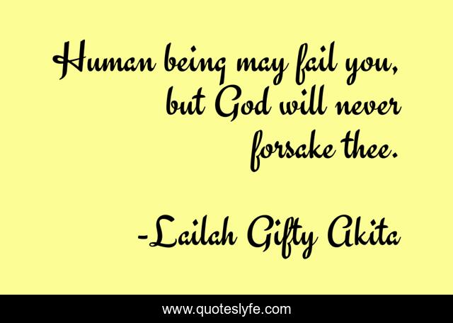 This page presents the quote "Human being may fail you, but God will never forsake thee.". Author of this quote is Lailah Gifty Akita. This quote is about faith, god, advice, expectation, positive-thinking, adversity, difficulties, disappointment, self-help,.