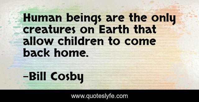 This page presents the quote "Human beings are the only creatures on Earth that allow children to come back home.". Author of this quote is Bill Cosby. .