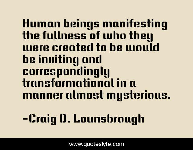 "Craig D. Lounsbrough Quotes." Quoteslyfe.com, 2025. Fri. 05 Dec. 2025. <https://www.quoteslyfe.com/quote/Human-beings-manifesting-the-fullness-of-who-229965>.