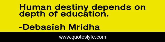 This page presents the quote "Human destiny depends on depth of education.". Author of this quote is Debasish Mridha. This quote is about human-destiny, philosophy, debasish-mridha, importance-of-an-education, quotes, inspirational, enthusiasm, education, debasish-mridha-m-d,.