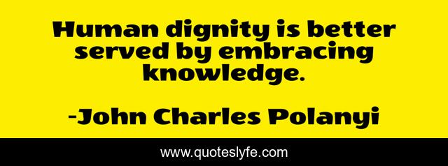 This page presents the quote "Human dignity is better served by embracing knowledge.". Author of this quote is John Charles Polanyi. This quote is about better, dignity, human,.