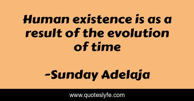 This page presents the quote "Human existence is as a result of the evolution of time". Author of this quote is Sunday Adelaja. This quote is about love, people, money, principles, employment, worship, celebrating-people, destiny, service,.