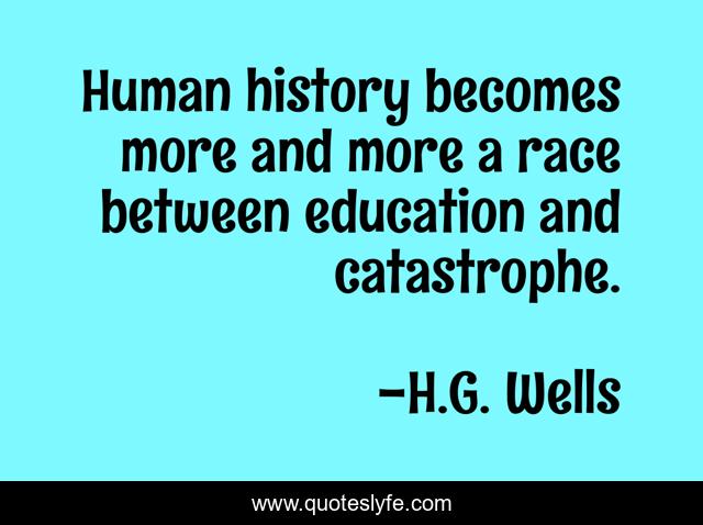 This page presents the quote "Human history becomes more and more a race between education and catastrophe.". Author of this quote is H.G. Wells. This quote is about education, catastrophe, history,.