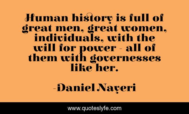 This page presents the quote "Human history is full of great men, great women, individuals, with the will for power - all of them with governesses like her.". Author of this quote is Daniel Nayeri. This quote is about humanity, history,.