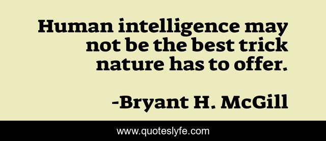 This page presents the quote "Human intelligence may not be the best trick nature has to offer.". Author of this quote is Bryant H. McGill. This quote is about best, human, nature,.