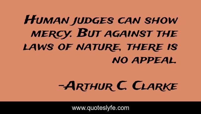 This page presents the quote "Human judges can show mercy. But against the laws of nature, there is no appeal.". Author of this quote is Arthur C. Clarke. This quote is about mercy, human, laws,.