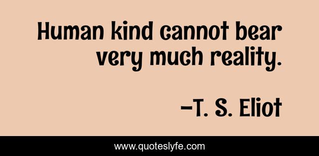 This page presents the quote "Human kind cannot bear very much reality.". Author of this quote is T. S. Eliot. .