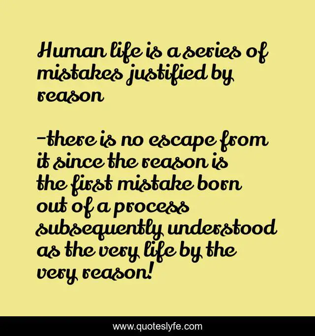 This page presents the quote "Human life is a series of mistakes justified by reason". Author of this quote is there is no escape from it since the reason is the first mistake born out of a process subsequently understood as the very life by the very reason!. .