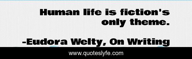 This page presents the quote "Human life is fiction's only theme.". Author of this quote is Eudora Welty, On Writing. This quote is about eudora-welty, fiction, writing,.