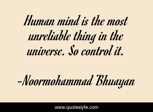 This page presents the quote "Human mind is the most unreliable thing in the universe. So control it.". Author of this quote is Noormohammad Bhuayan. This quote is about mind, psychology,.