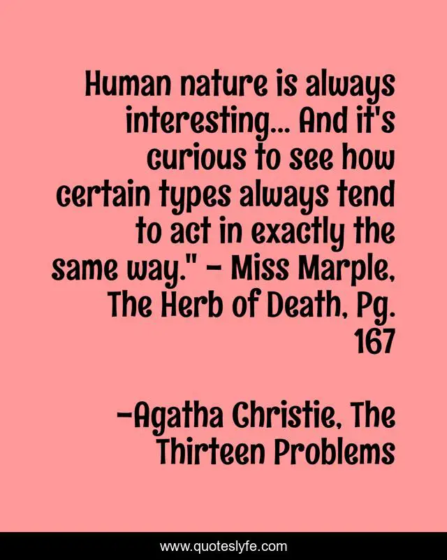 "Agatha Christie, The Thirteen Problems Quotes." Quoteslyfe.com, 2025. Sat. 06 Dec. 2025. <https://www.quoteslyfe.com/quote/Human-nature-is-always-interesting-And-it-175328>.