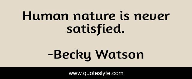 This page presents the quote "Human nature is never satisfied.". Author of this quote is Becky Watson. This quote is about faith, christian, hope, christianity,.