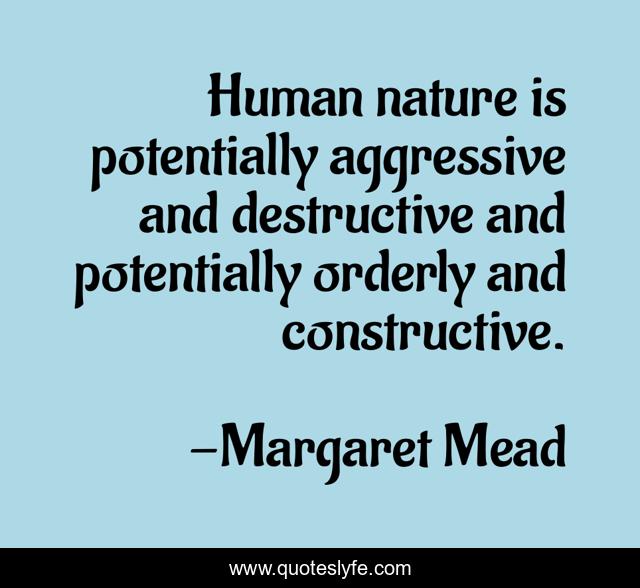 This page presents the quote "Human nature is potentially aggressive and destructive and potentially orderly and constructive.". Author of this quote is Margaret Mead. This quote is about human nature, human,.