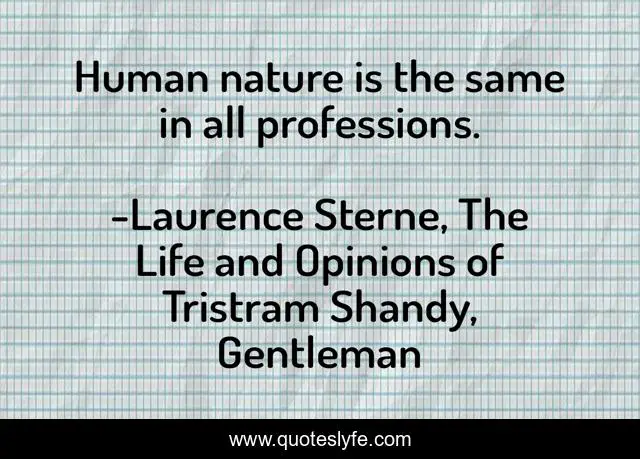 This page presents the quote "Human nature is the same in all professions.". Author of this quote is Laurence Sterne, The Life and Opinions of Tristram Shandy, Gentleman. .
