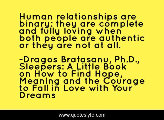 "Dragos Bratasanu, Ph.D., Sleepers: A Little Book on How to Find Hope, Meaning and the Courage to Fall in Love with Your Dreams Quotes." Quoteslyfe.com, 2025. Fri. 05 Dec. 2025. <https://www.quoteslyfe.com/quote/Human-relationships-are-binary-they-are-complete-35318>.
