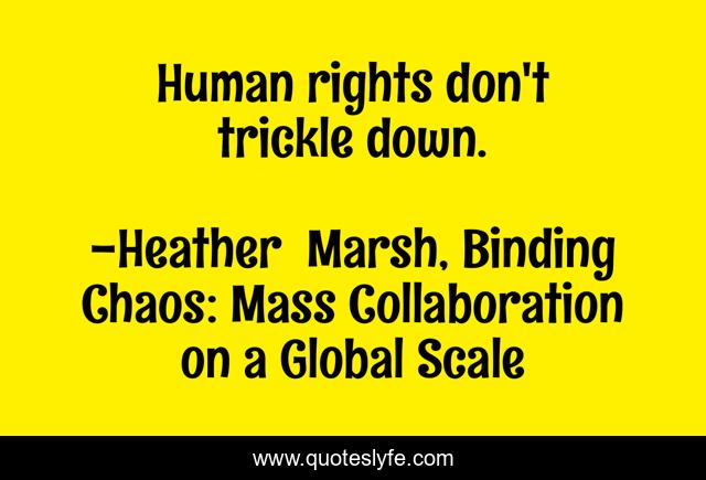 "Heather Marsh, Binding Chaos: Mass Collaboration on a Global Scale Quotes." Quoteslyfe.com, 2025. Fri. 05 Dec. 2025. <https://www.quoteslyfe.com/quote/Human-rights-don-t-trickle-down-102432>.
