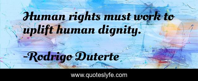 This page presents the quote "Human rights must work to uplift human dignity.". Author of this quote is Rodrigo Duterte. This quote is about dignity, human, rights,.