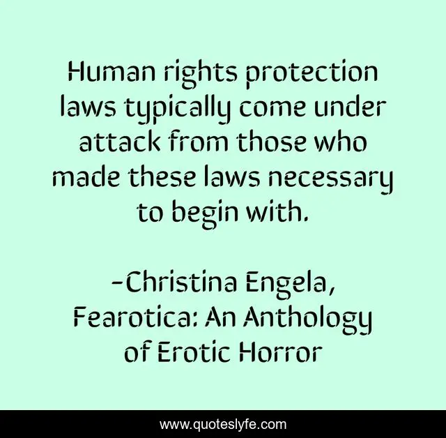"Christina Engela, Fearotica: An Anthology of Erotic Horror Quotes." Quoteslyfe.com, 2025. Tue. 09 Dec. 2025. <https://www.quoteslyfe.com/quote/Human-rights-protection-laws-typically-come-under-258843>.