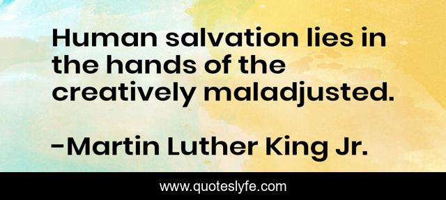 This page presents the quote "Human salvation lies in the hands of the creatively maladjusted.". Author of this quote is Martin Luther King Jr.. .
