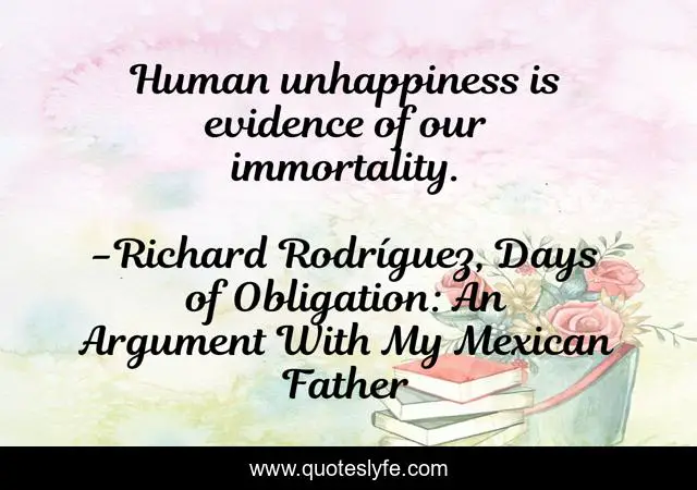 "Richard Rodríguez, Days of Obligation: An Argument With My Mexican Father Quotes." Quoteslyfe.com, 2025. Sat. 06 Dec. 2025. <https://www.quoteslyfe.com/quote/Human-unhappiness-is-evidence-of-our-immortality-16846>.