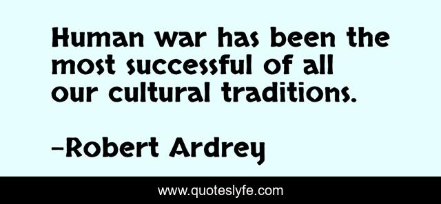 This page presents the quote "Human war has been the most successful of all our cultural traditions.". Author of this quote is Robert Ardrey. .