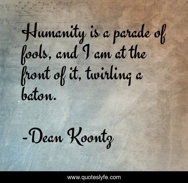 This page presents the quote "Humanity is a parade of fools, and I am at the front of it, twirling a baton.". Author of this quote is Dean Koontz. .