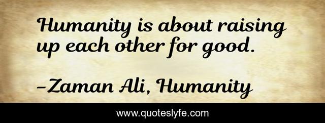 This page presents the quote "Humanity is about raising up each other for good.". Author of this quote is Zaman Ali, Humanity. This quote is about good, rising-up, humaity,.