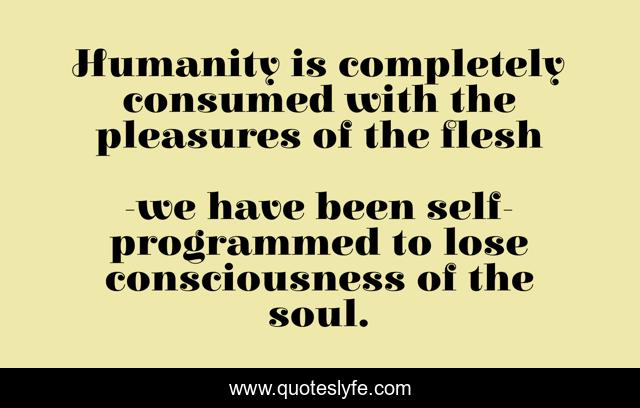 "we have been self-programmed to lose consciousness of the soul. Quotes." Quoteslyfe.com, 2025. Mon. 08 Dec. 2025. <https://www.quoteslyfe.com/quote/Humanity-is-completely-consumed-with-the-pleasures-63809>.