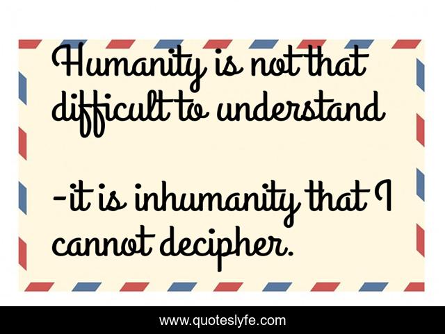 "it is inhumanity that I cannot decipher. Quotes." Quoteslyfe.com, 2025. Sun. 14 Dec. 2025. <https://www.quoteslyfe.com/quote/Humanity-is-not-that-difficult-to-understand-71266>.