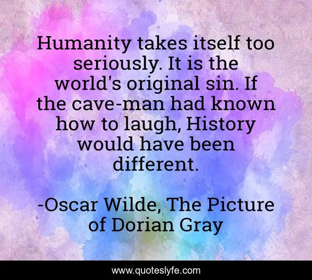 This page presents the quote "Humanity takes itself too seriously. It is the world's original sin. If the cave-man had known how to laugh, History would have been different.". Author of this quote is Oscar Wilde, The Picture of Dorian Gray. This quote is about seriousness, humor,.