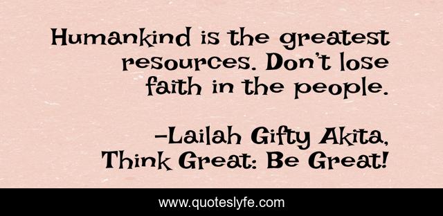 "Lailah Gifty Akita, Think Great: Be Great! Quotes." Quoteslyfe.com, 2025. Fri. 05 Dec. 2025. <https://www.quoteslyfe.com/quote/Humankind-is-the-greatest-resources-Don-t-102615>.