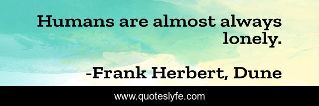 "Frank Herbert, Dune Quotes." Quoteslyfe.com, 2025. Sat. 06 Dec. 2025. <https://www.quoteslyfe.com/quote/Humans-are-almost-always-lonely-139236>.